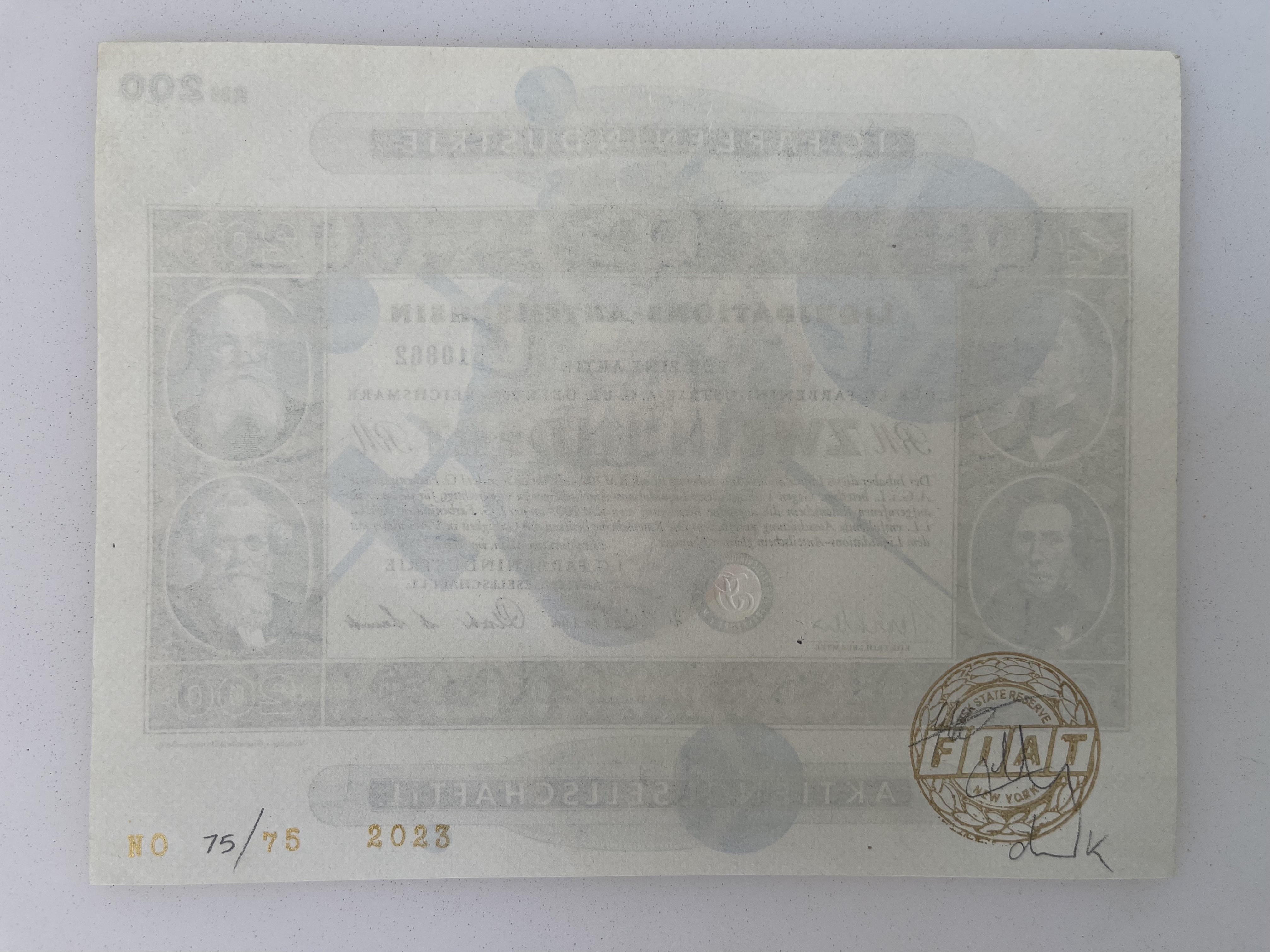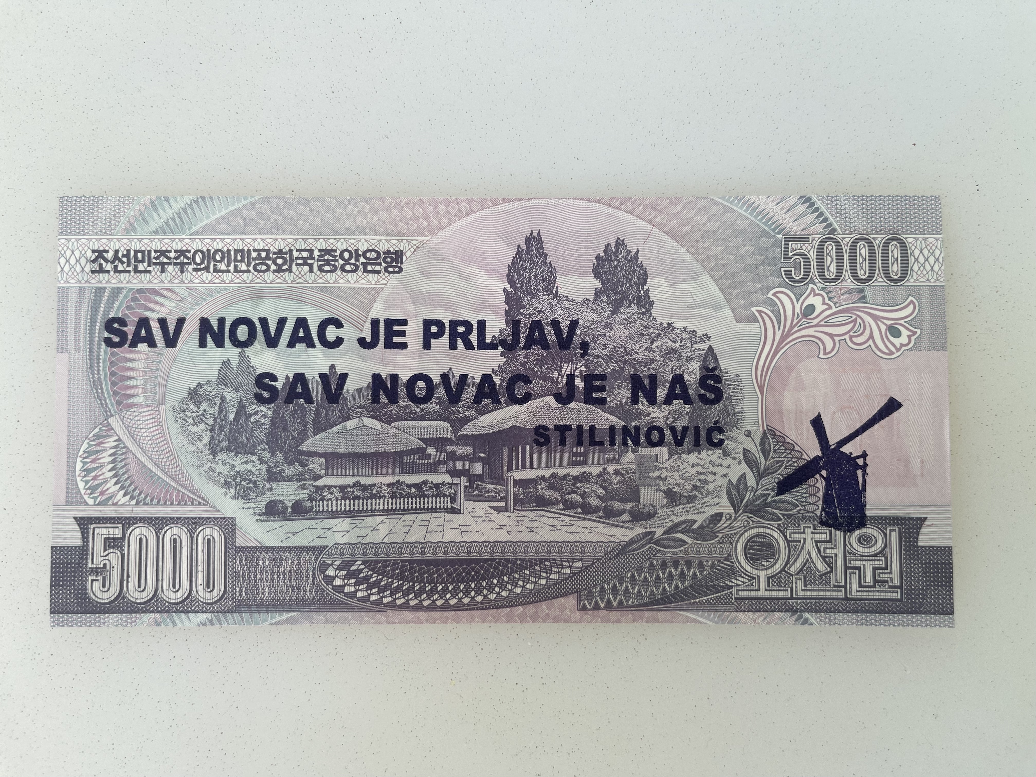 Both editions of the book come with an NSK printed banknote and the hardback also includes an NSK printed bond - see images below. Each piece of currency is an artwork in itself and a former currency note or bond.